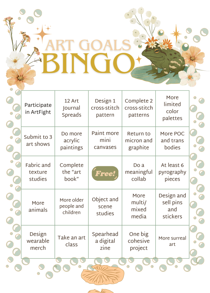 But first, the guiding light of my creative endeavors this year — Art Goals Bingo.